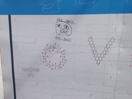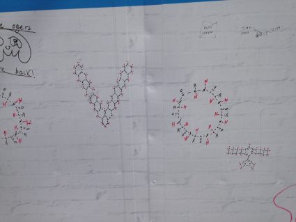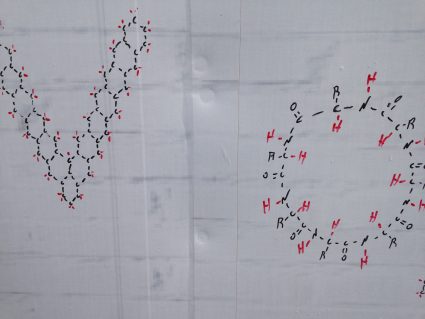 Izik is a jerusalemity studied m.cs. chemistry that gone crazy after death of his friend and began to paint organic moleculas (complex) all over Hebrew University and Jerusalem cityfull image ->